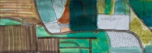 "I took a bird's eye view of farmland as a whole. Individually paddocks are portrayed by individual materials, chosen for their texture, form, colour and relevance. These panel or fields simulate pasture, crops, and land in different states. This choice of materials is confined to ones that are recognizable and relatable to agricultural and horticulture sectors. Building a bridge between the bank and their core clients. But also presented an artistic branding to all customers, visitors and staff. The spacial artwork aims to be a talking point and promote connection and sense of belonging. In turn relaxing those in this coffee station and ‘kitchen table’ zone of the bank offices.
