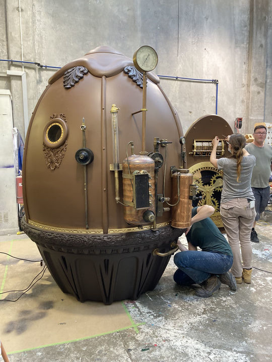 Human dynamo designed and fabricated the chocolate time machine, including some special effect moments.
