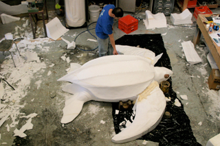 An interactive display of a fully grown Leatherback Turtle, for Kelly Tarlton's Antarctic Encounter and Underwater World. This was an exhibition piece that children can climb over, so t had to be bullet proof. This leatherback turtle was sculpted out of one piece of polystyrene. It was then transformed to thick hollow fibreglass, before it was hand painted with the toughest paint available.