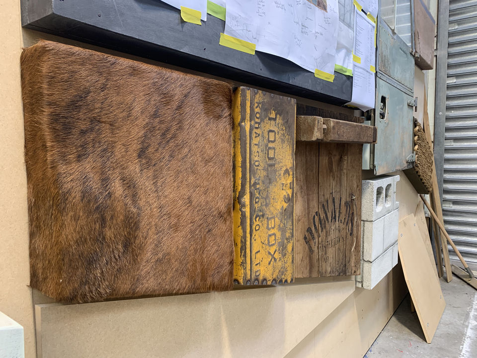 Each panel has its' own story, told through its materiality and history. Some new finishes speak to the current and future environments in farming. While found objects and elements reference to history and time worn processes, via their substance and patina. Each material is recognisable in itself and also portrays an alternative perspective, seen through the DOWN TO EARTH lens."